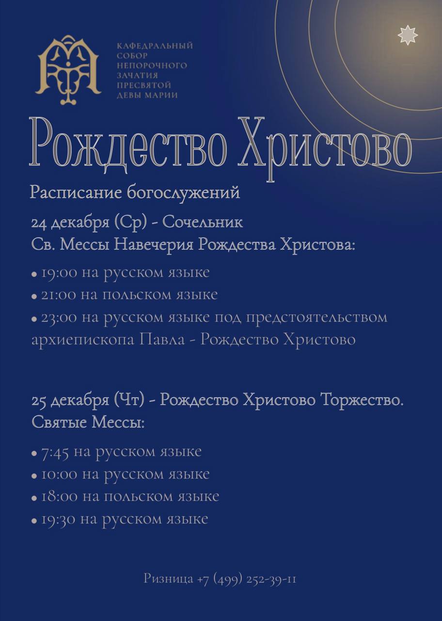 Расписание Св. Месс в Кафедральном соборе 24-25 декабря 2025 года
