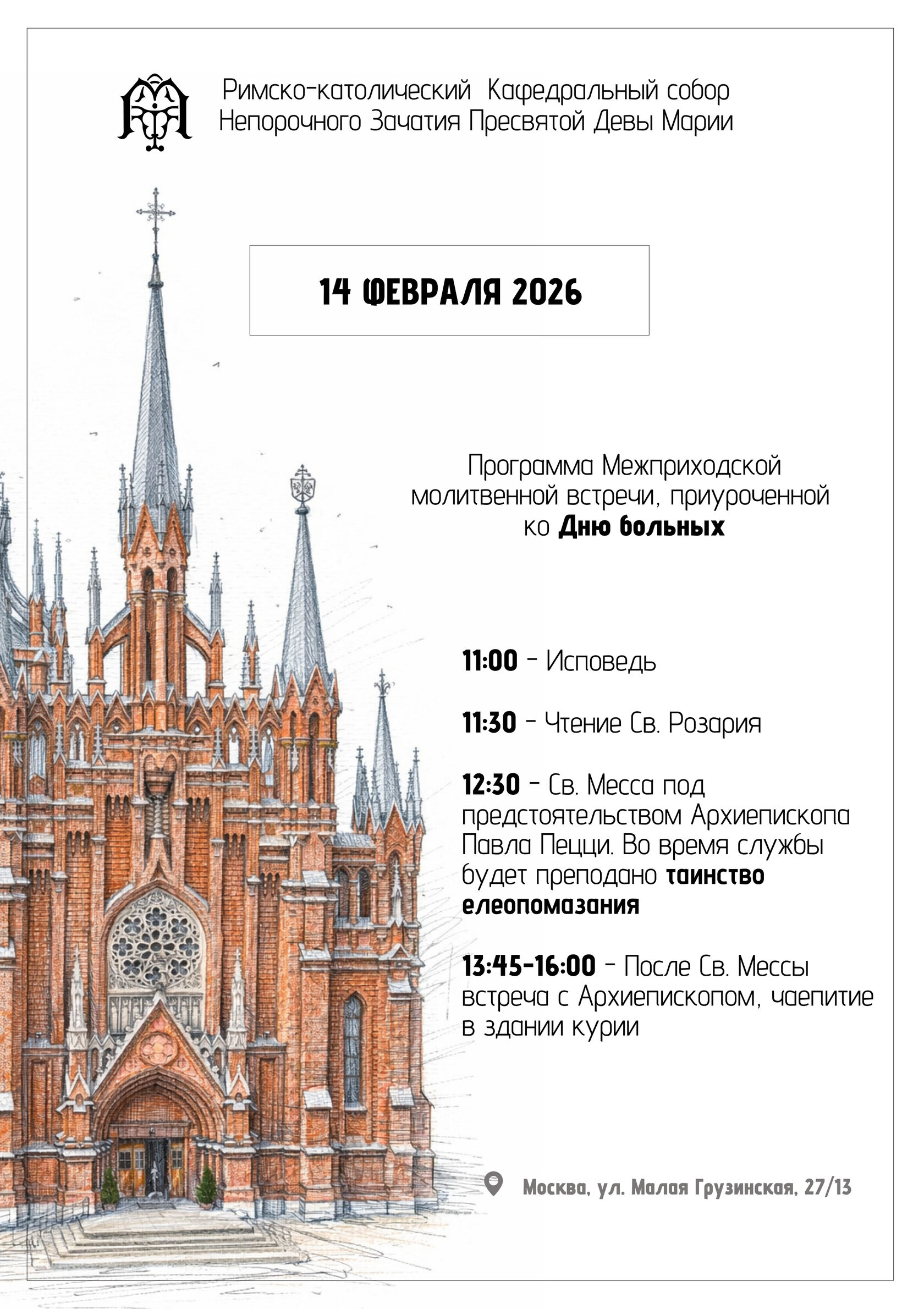 14 февраля пройдет межприходская молитвенная встреча, приуроченная к Дню больных. Все подробности на афише.